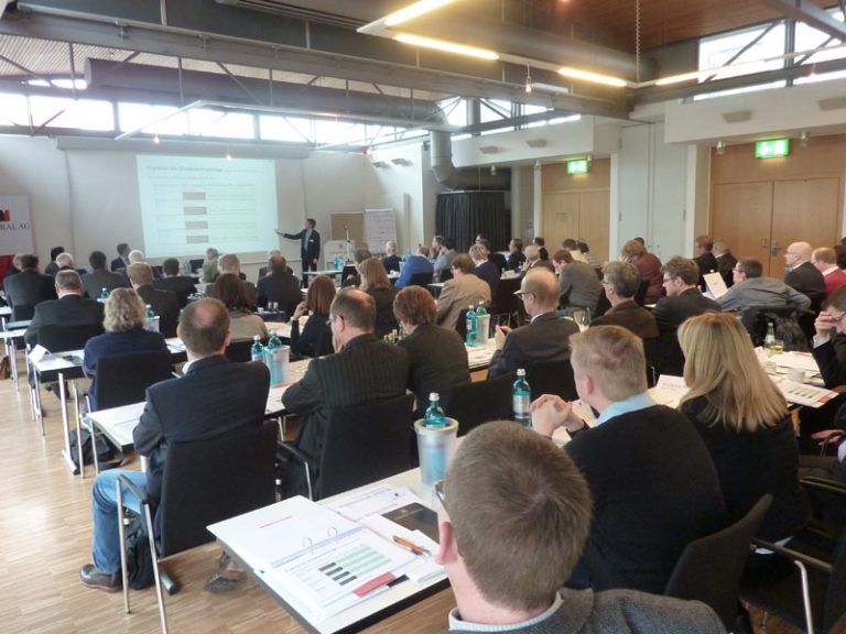 Annähernd 70 kommunale Entscheider aus den Bundesländern Nordrhein-Westfalen und Niedersachsen nahmen am 18. März 2014 an der Fachtagung "Kommunale Zinssteuerung" in Münster teil.
